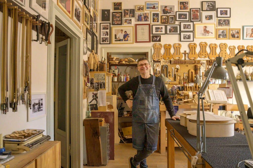 Costruisce viole, violini e violoncelli in numero limitato destinati ad importanti venditori internazionali e musicisti straordinari.